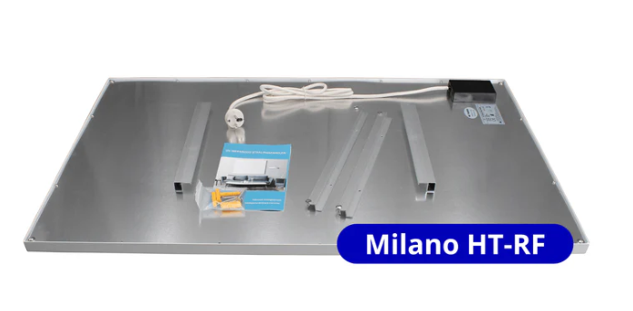 Het Milano HT-RF infrarood plafondpaneel combineert strak design met krachtige warmteafgifte. Dankzij de frameloze afwerking, afgeronde hoeken en poedergecoate aluminium voorzijde past dit paneel perfect in moderne interieurs – van woonkamer en kantoor tot hobbyruimte of badkamer.